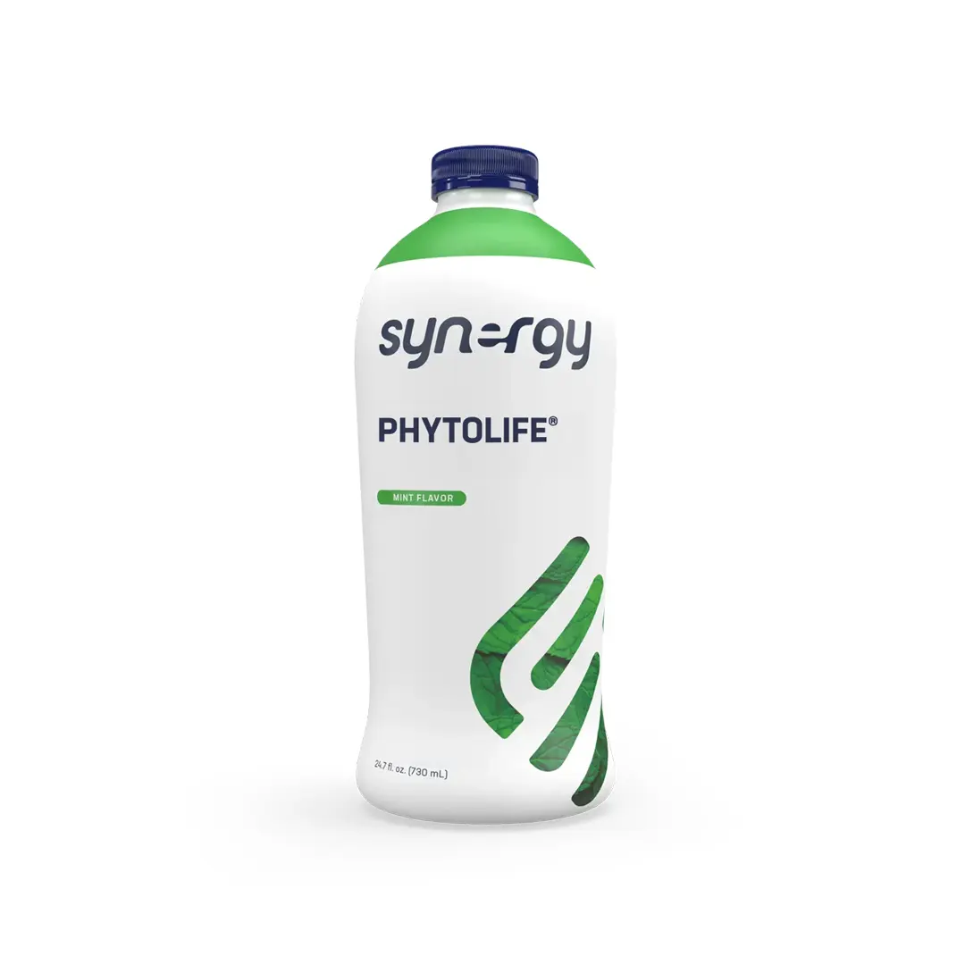Elevate your wellness with Synergy PhytoLife, a powerful liquid supplement featuring chlorophyllin from mulberry and alfalfa, plus invigorating peppermint oil.